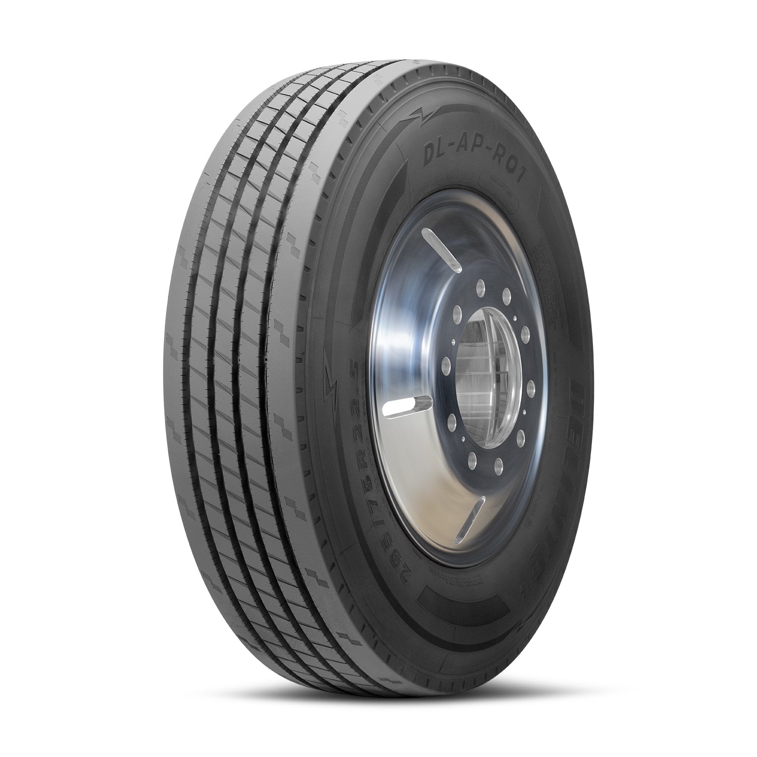 The Delinte DL-AP-R01 tire in size 11R22.5 is engineered for heavy-duty applications, featuring a 16-ply rating that ensures exceptional strength and durability. With a load index of 146/143, it supports maximum loads of 6,614 lbs for single tires and 6,008 lbs for dual setups. Its speed rating of L is optimized for consistent performance at highway speeds. Manufactured in Thailand, this tire is designed to provide reliable traction and longevity for commercial vehicles that demand robust load handling and stability.